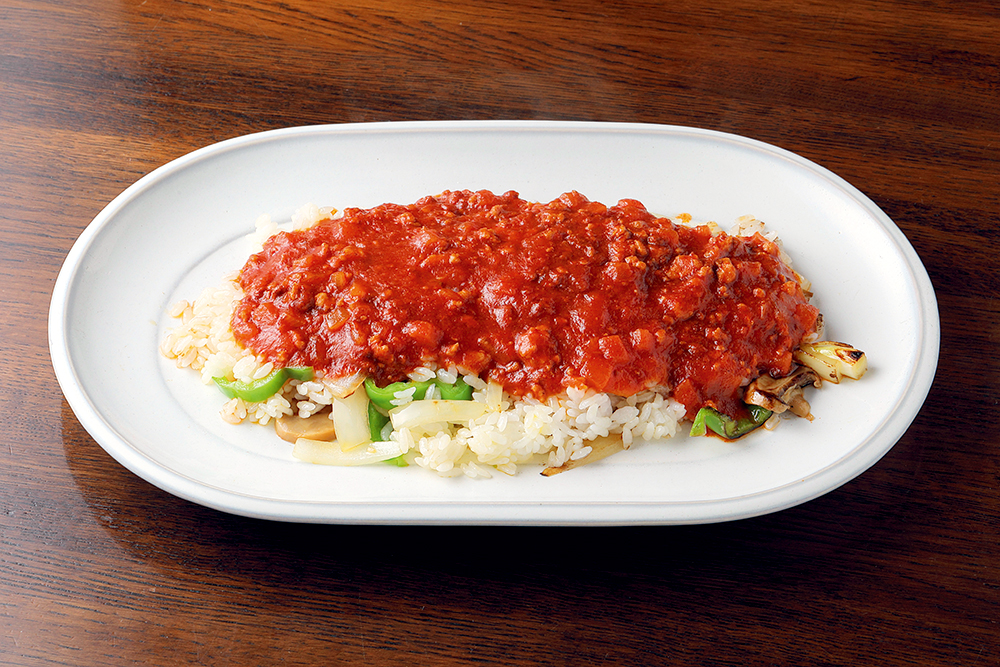 「ミートソースピラフ」(630円)。玉ねぎやピーマンなどのシャキシャキ野菜と肉の旨みを閉じ込めたミートソースを豪快にかき混ぜて味わおう!