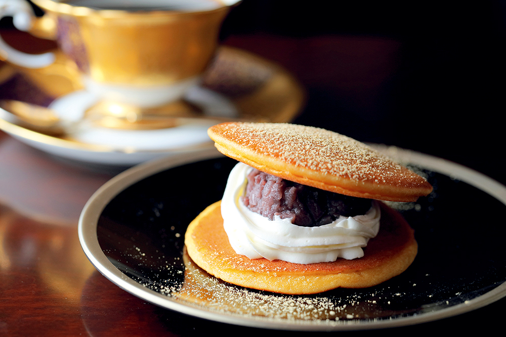 みりんとハチミツで甘みを醸した記事と店内で炊いたあんこ、生クリームと黄な粉で挟んだ「ホシヤマふわどら」(540円)