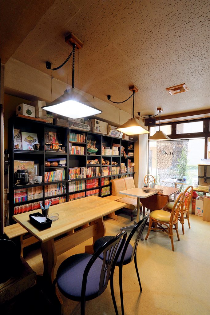 約2,000冊のマンガがずらりと並ぶ店内。昼時にはサラリーマンの憩いの場として愛されています