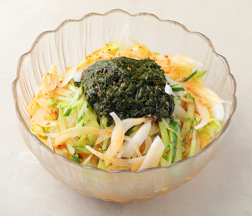 磯の香りと粘りが特長のギバサを使った「ギバサ冷製パスタ」(850円)