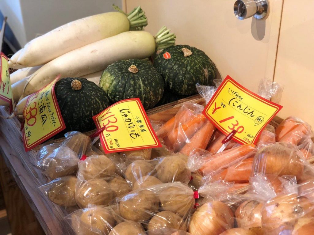 店先ではさまざまな野菜を販売。卸の直営ということで鮮度の高い商品が種類豊富に並びます。