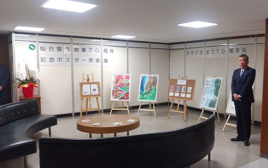 仙台銀行が創業70周年!障がいのあるクリエイターたちがデザインした記念ポスター原画を展示