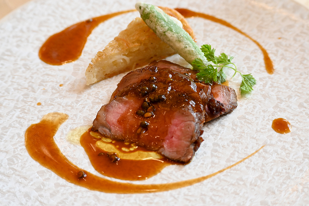 【メイン料理】牛サーロインのソテー グリーンペッパーソース