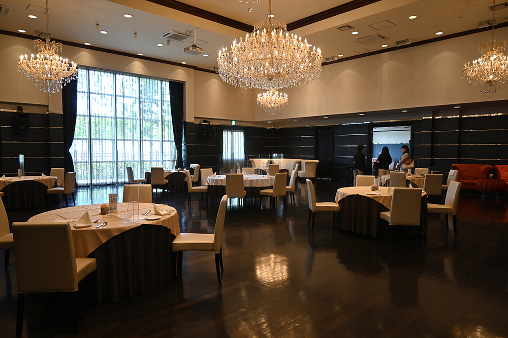 天井に輝くきらびやかなシャンデリアにも思わずうっとり。披露宴会場さながらのテーブルセッティングやスタッフの質の高いサービスからも特別感を得られます。