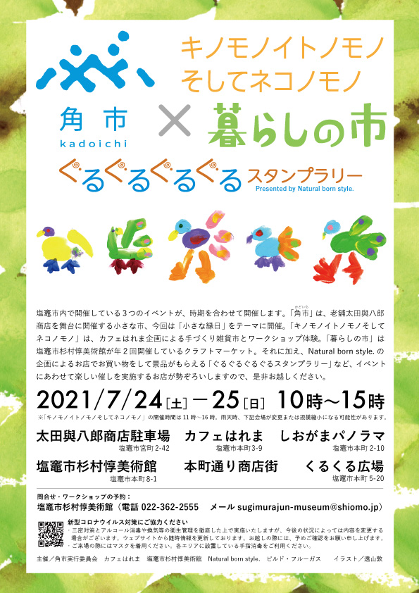 そして「暮らしの市」は、『塩竈市杉村惇美術館』『本町商店街』『くるくる広場』の3会場で開催されるクラフトマーケット!