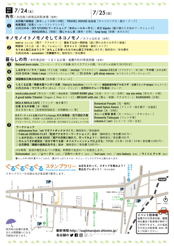 そして塩竈市本町のカフェ『Natural born style.』が企画する「ぐるぐるぐるぐるスタンプラリー」も開催!市内の対象店舗を回って買い物し、スタンプをゲットすると先着で景品がもらえる楽しい企画です。