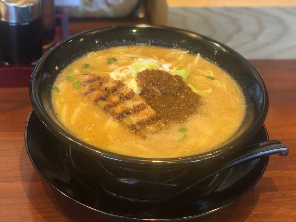 特製豚白湯に韓国唐辛子の奥深いコクと辛味をプラスした「からこく味噌らーめん」(913円)。辛さは中辛・大辛・鬼辛から選べます