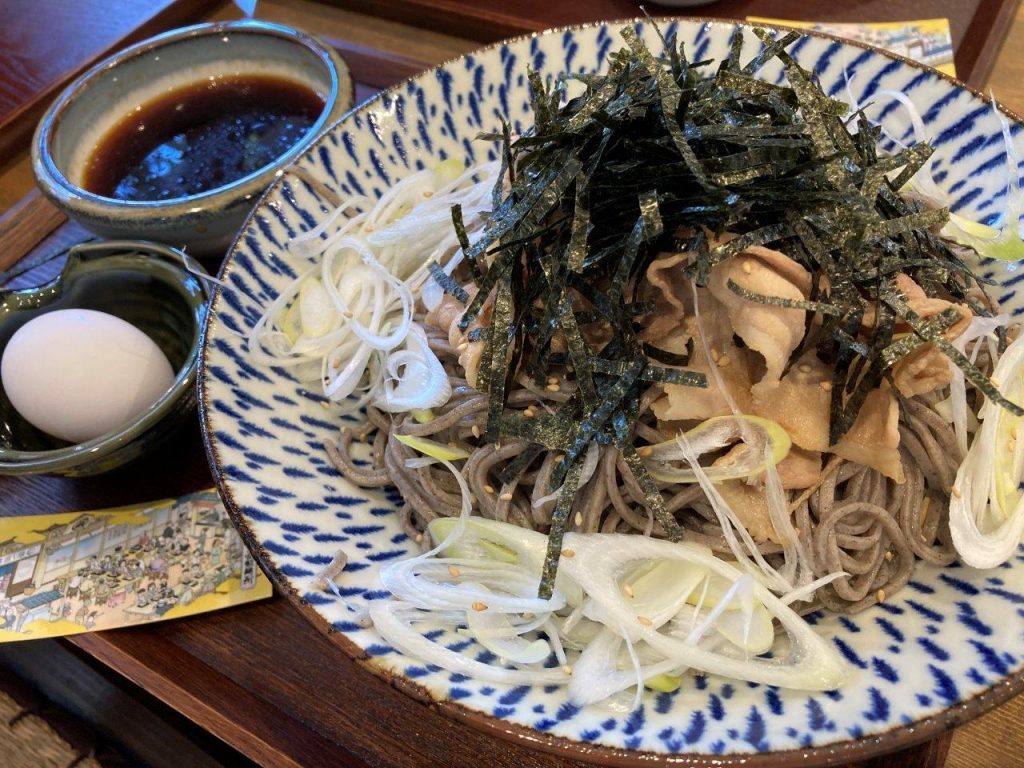 『めし処 萩ノ宮』で出しているメニュー「肉つけ蕎麦(冷)」(850円)。写真は中盛ですが、ボリューミーで大満足!