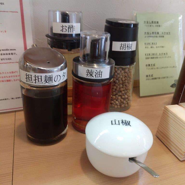 卓上に据えられた調味料を加えて、より好みの味にカスタマイズして召し上がれ