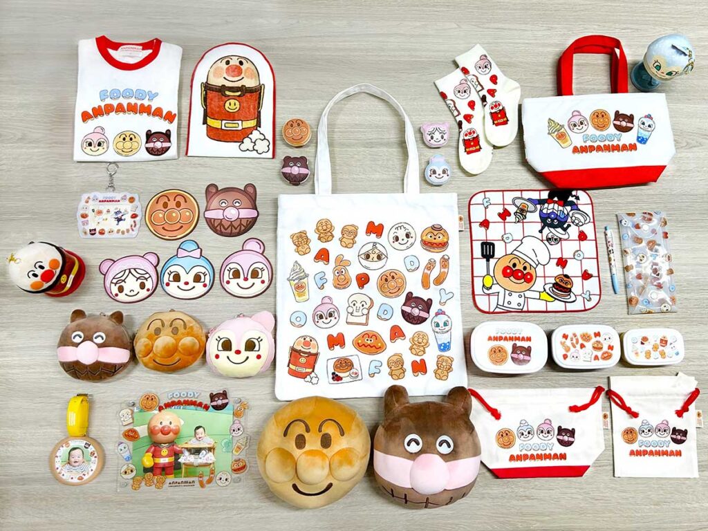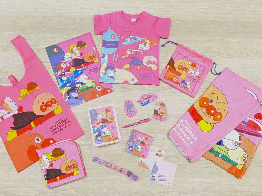ショップには、アンパンマンや仲間たちがモチーフのグッズがずらり!