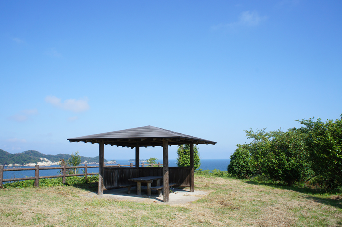 「馬の背」と呼ぶ、馬の背中のような切り立った岬。展望園地は日当たりが良く、のんびりするには格好の場所。
