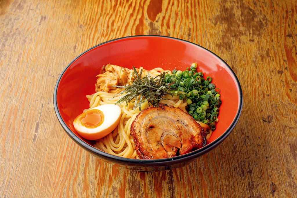 多くの油そばファンが足繁く通う一軒。トロトロの味玉、歯切れのよいメンマ、ぶ厚いチャーシューなど、抜かりないトッピングもさることながら、特筆すべきはモッチモチの麺。箸で持ち上げるとずっしりと重さを感じるほど重量感ある麺は、特注の極太麺。断面を四角くすることで、オリジナルの歯触りを生み出している。平日・休日問わず、並ばずに入店するのは困難なほど常に賑わう人気店。その味を一度試したならば、行列にも納得するはず。