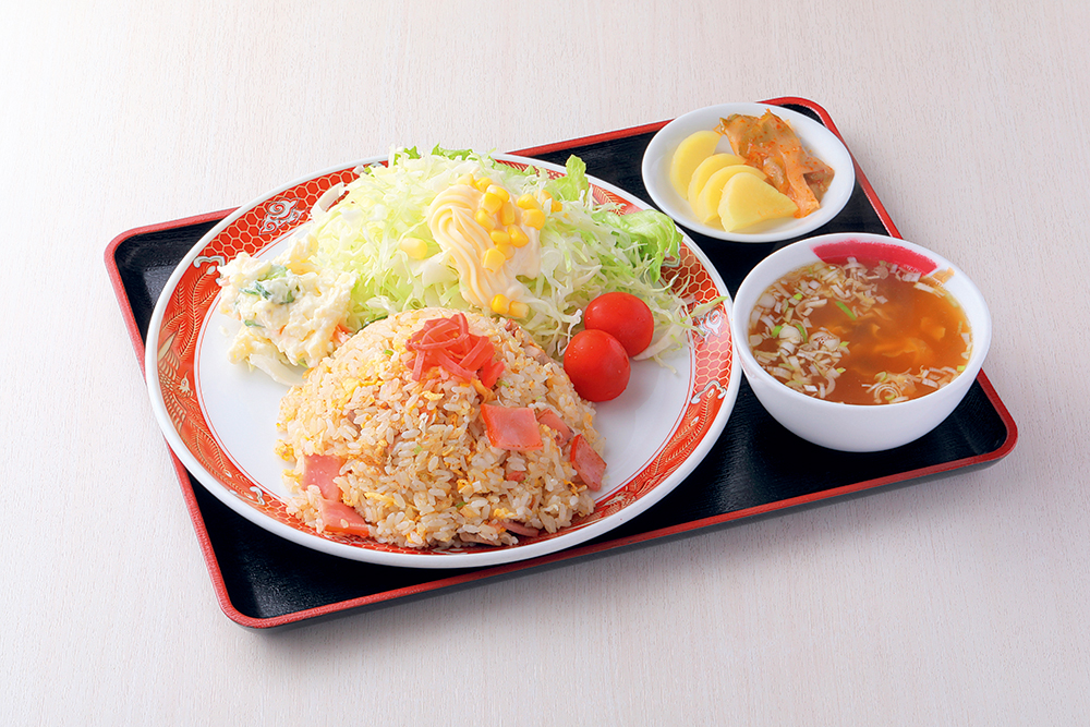 「働く人の原動力になってほしい」と、普通盛で約600gとボリューミーな「ランチ炒飯」(756円)※スープ、サラダ、漬物付