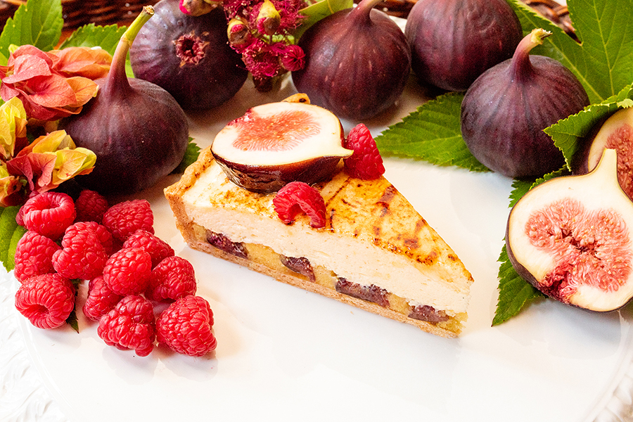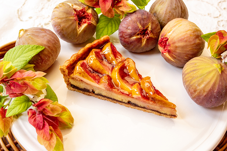 軽い口あたりのシブーストクリームとイチジクの赤ワイン煮を加え、じっくりと焼き上げたアーモンドクリームを組み合わせ。ごろっとのせたイチジクの柔らかくジューシーな味わいと共に楽しもう