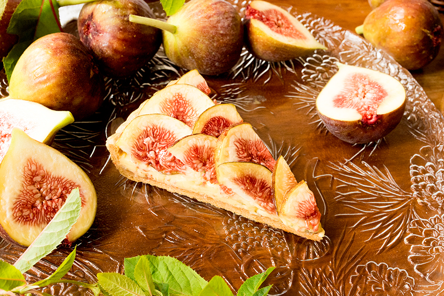 タルト一面に敷き詰めた「とよみつひめ」とカスタードクリーム、シンプルだけど素材の味をしっかりと楽しめるタルト。「とよみつひめ」で作ったイチジクジャムの程よい酸味がアクセントになっている