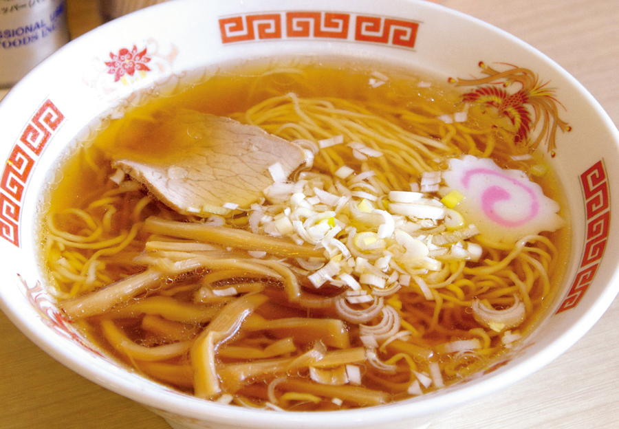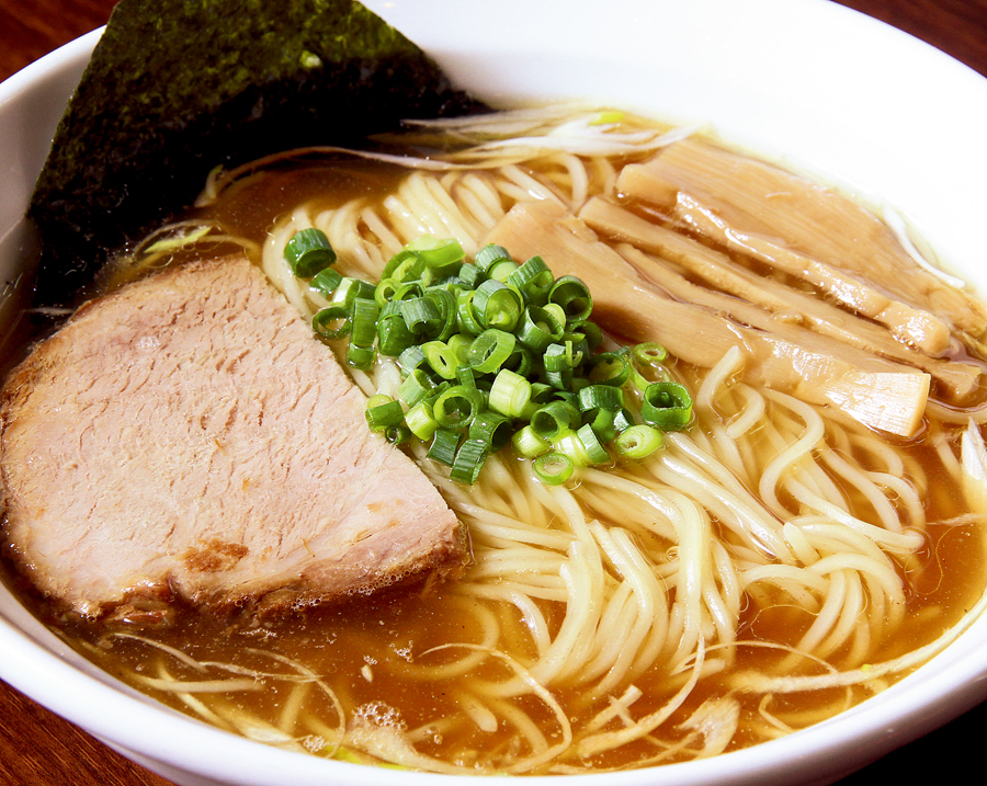 2種類以上の小麦をブレンドし、毎朝打つ自家製麺が自慢の一杯。細くストレートに切った麺を手もみすることで、複雑なちぢれを作り出している。スープは、豚骨を主体にサバ節と野菜をバランスよく加えたダシを使用。2種類の醤油をブレンドした醤油ダレと合わせ、すっきりかつ、ふくよかな味わいに仕上げている。