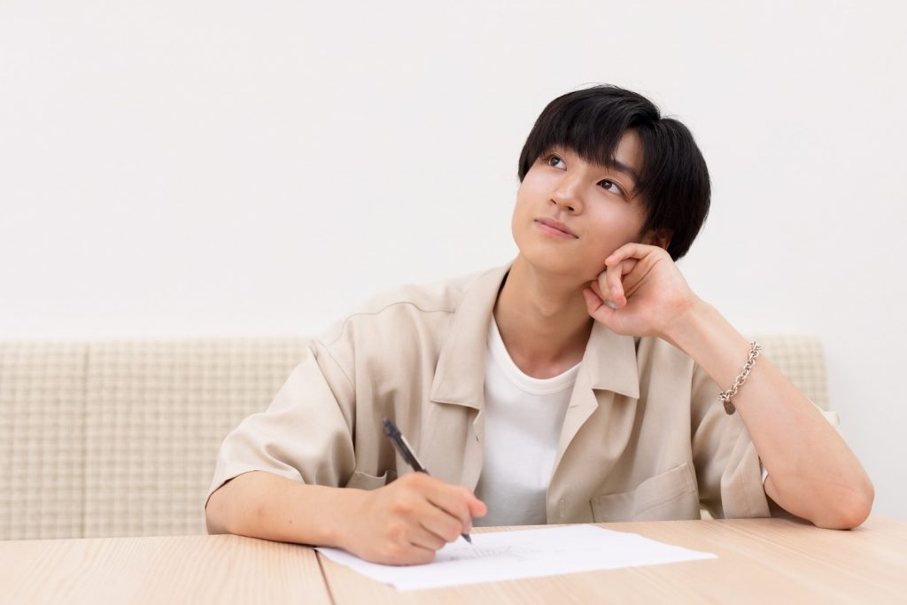 「え~~どうしよう…高い数値と、低い数値が混じってた方がおもしろいかな…?」と考えながら、自己分析グラフを書いてくれました