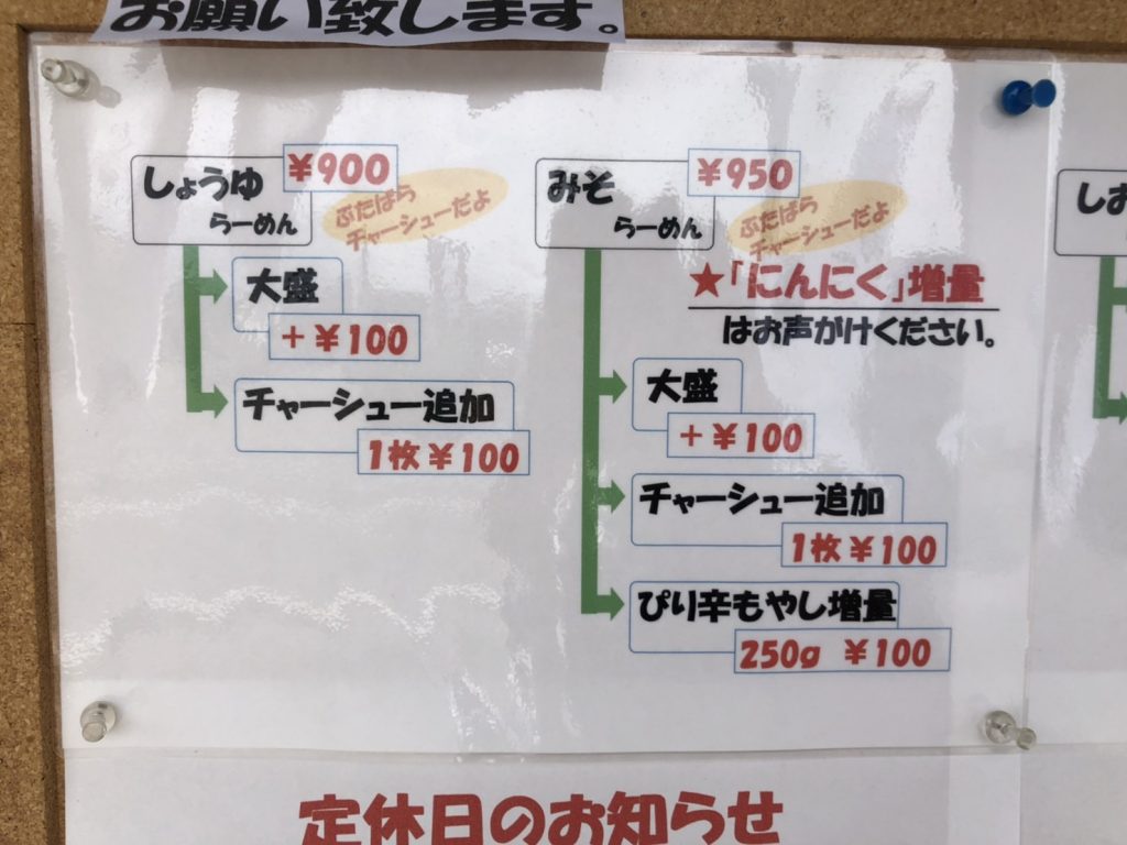 現在提供しているラーメンの種類は3種類。醤油ラーメン、味噌ラーメン、塩ラーメンです。
