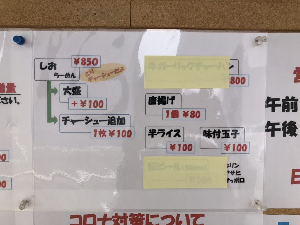 サイドメニューは唐揚げや半ライス。味付玉子がありました。