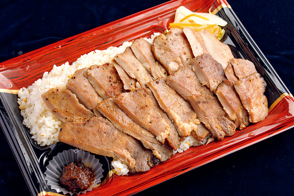 リーズナブルな価格も魅力の「満福牛タン弁当 塩」。リピーターが多いのは和食の世界で研鑽を積んだ社長のこだわりが随所に感じられるからこそ。牛たんは塩麹を加えたオリジナルのタレで72時間、さらに熟成庫で90時間と、合計約1週間熟成。溶岩石でふっくら焼き上げた牛たんは噛むほどに旨みが広がり、まさにお腹も心も“福”で満たされる味わいです。