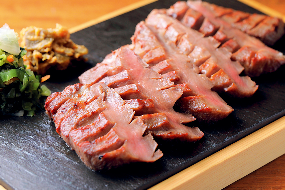 今年で創業35周年。『ミシュランガイド宮城2017』でビブグルマンに選出された実績を持つ名店です。「備長炭を使い、高温で一気に焼き上げています。うちは、炭の火力が命です!」と店長が語る牛たんは、外はカリッと、中はほんのりレアでジューシー。身が縮まらないよう細長く切れ込みを入れることで、歯切れの良さを実現した絶品牛たん焼を召し上がれ。