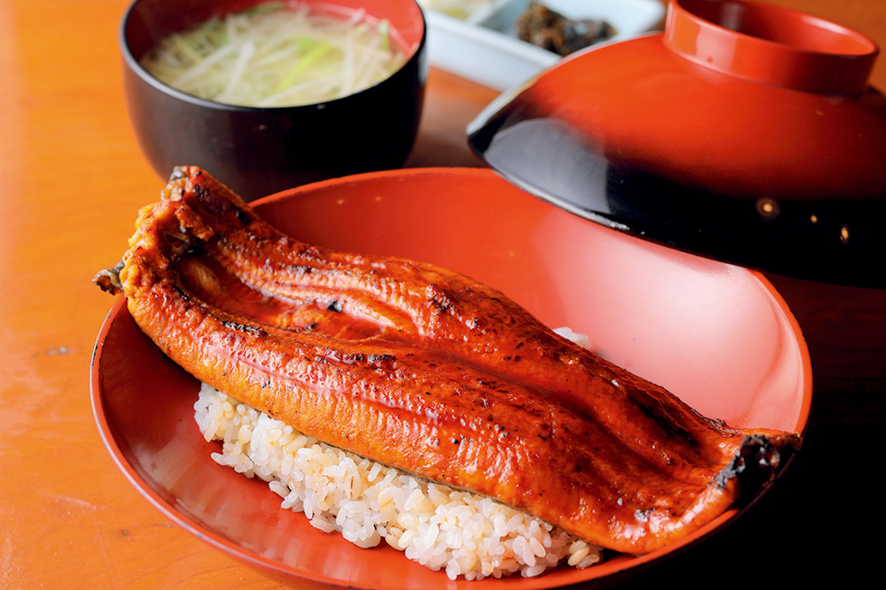 麦飯で食べる「うなぎ丼」(2,650円)。炭火で焼き上げるふわふわの蒲焼は専門店顔負けの味です