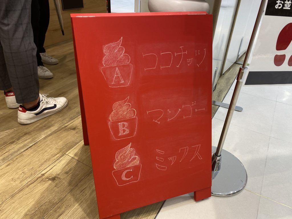 フレーバーは月替り。9月は「ココナッツソフトクリーム」「マンゴーソフトクリーム」の2種。「ミックス」もありますよ(各450円)
