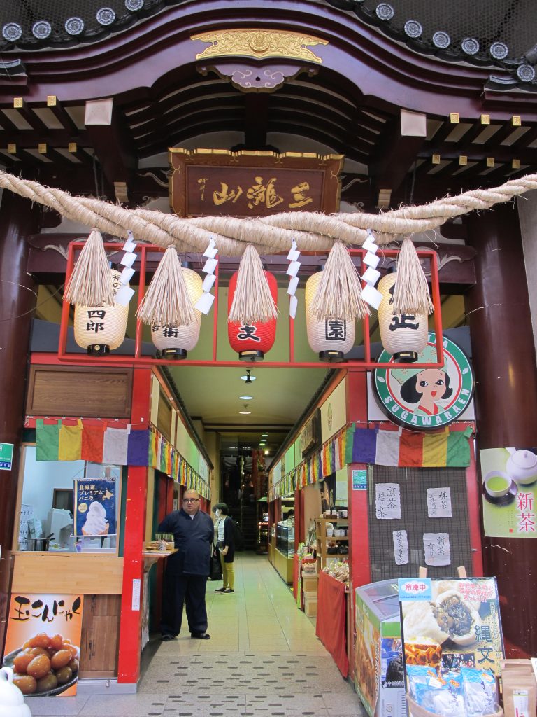 クリスロード商店街を歩いていくと、ふわりとお線香の香り。そろそろ『三瀧山不動院』に到着です。お店がひしめき合う、アーケードの中に突然現れる立派な山門が目印。加藤さ~ん、お届け物で~す!