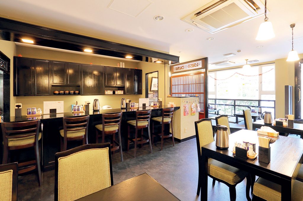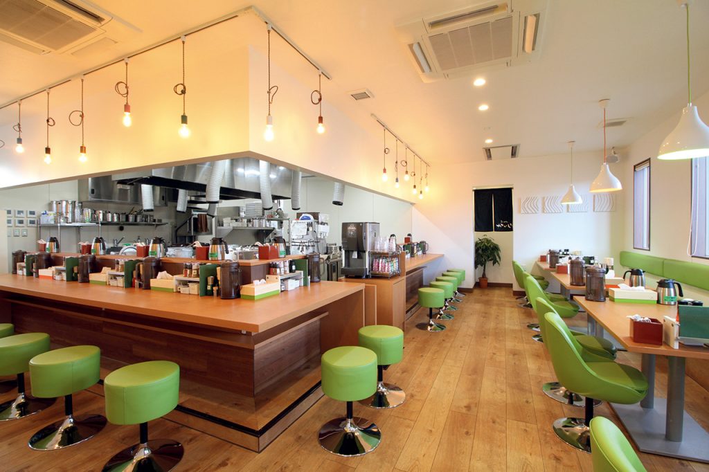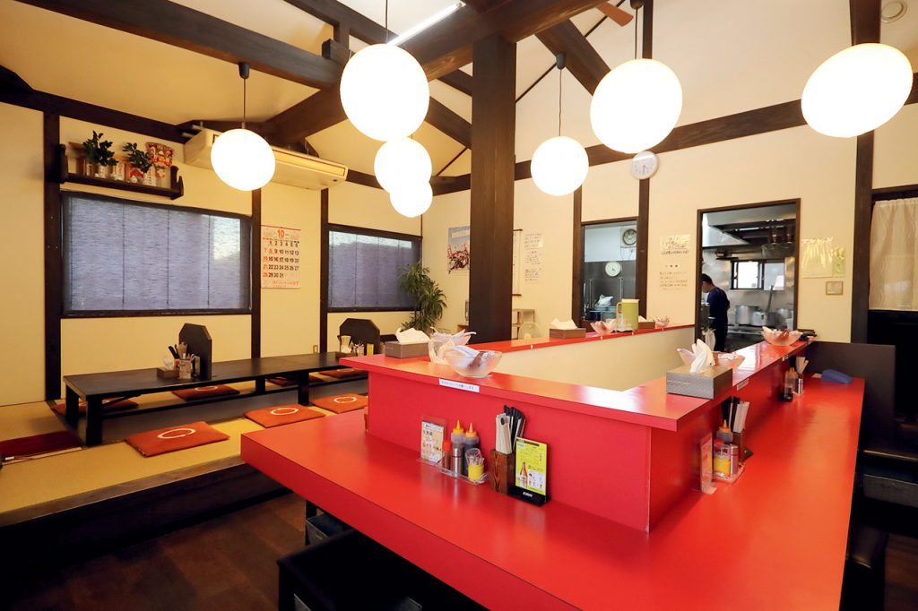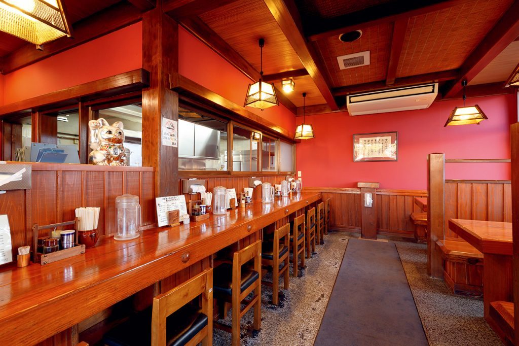 利府街道沿いに位置。店内にはカウンター席とテーブル席があります