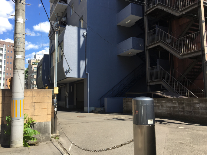 「ここであってる?」という気持ちを抑え、仙台高等検察庁の脇の小道を進むと見える、ブルーグレーのドミービル