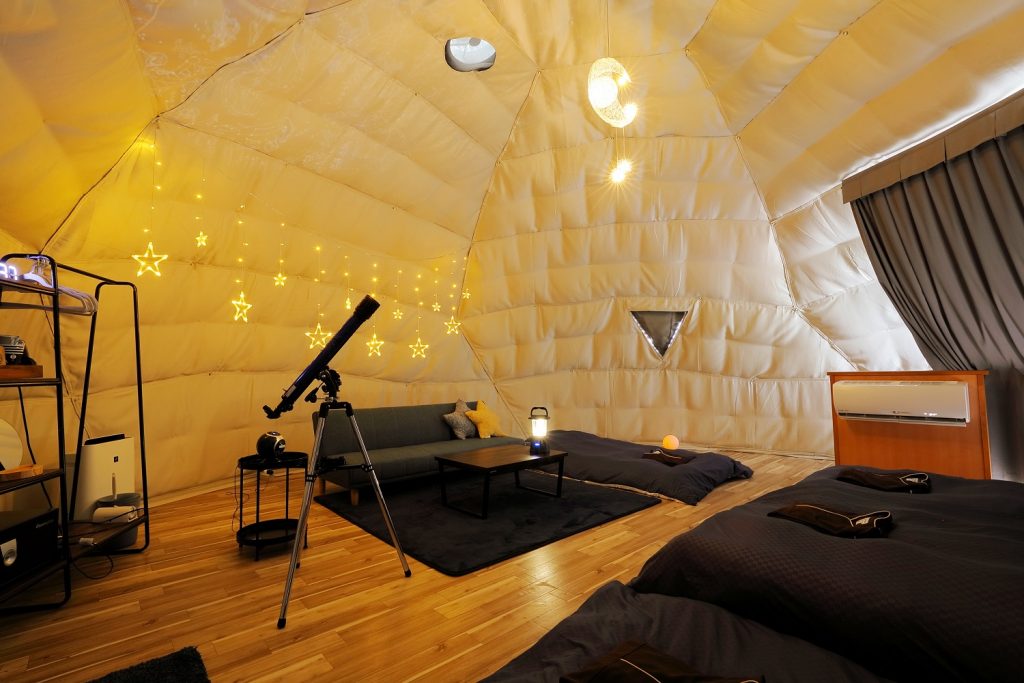 ・テントは、プラネタリウムを楽しめる「アステール」、まるでプリンセスルームのような「ギュネー」、ドッグラン併設の「ゾーオン」3種類
