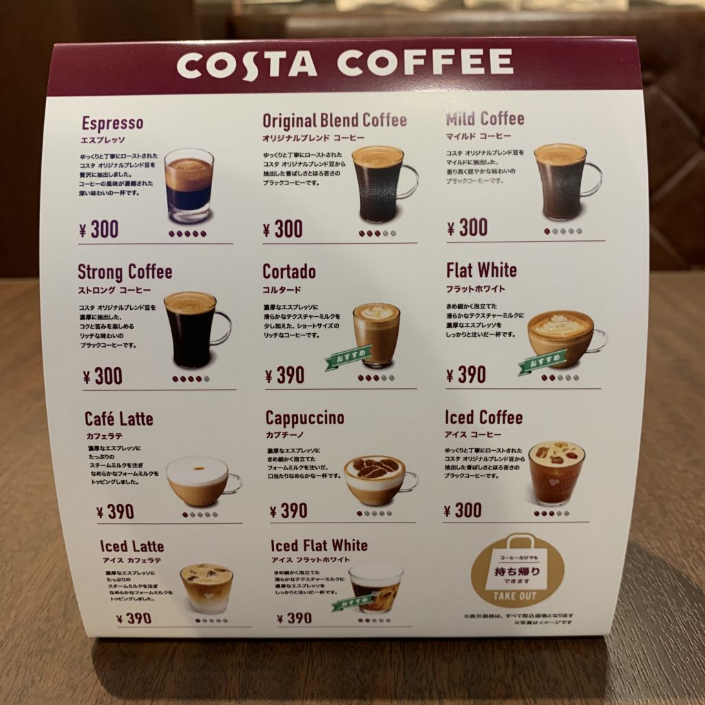 それでは、実際に「COSTA COFFEE」を注文してみます。