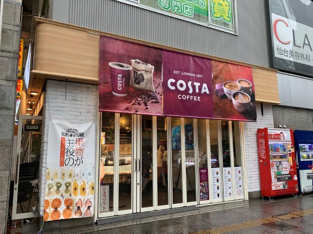 『ケルツ仙台駅前店』では、10時から翌3時までの終日を通して、「COSTA COFFEE」が楽しめるようになりました。