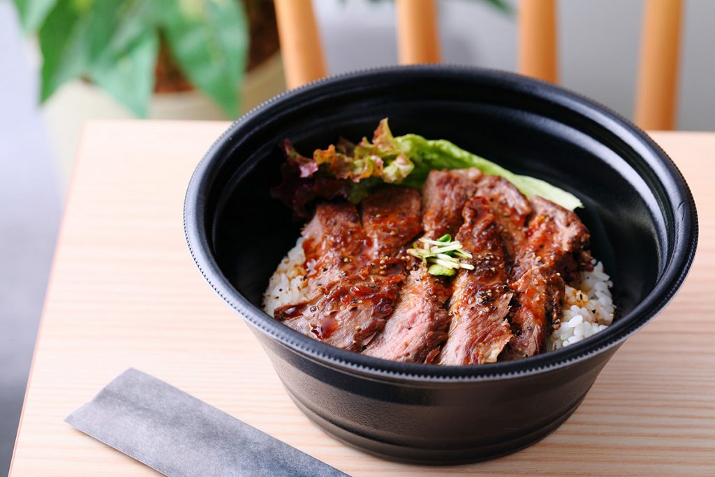 「Red Rock(レッドロック)」の看板メニューは、「ローストビーフ丼」。ご飯には甘辛く濃厚なタレ、ローストビーフには肉の旨みを引き立てるあっさりとした醤油ベースの和風をダレを使い分け、卵黄とヨーグルトソースで仕上げています。しっとり柔らかで、力強い肉の旨みは、ご飯が進むこと間違いなし!