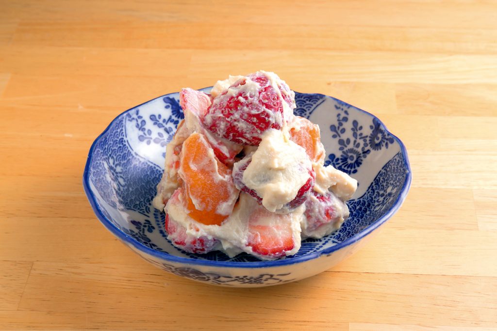 季節のフルーツを使った白和えも名物のひとつ。フルーツの甘みと白和えのクリーミーさが一体となりスイーツのよう
