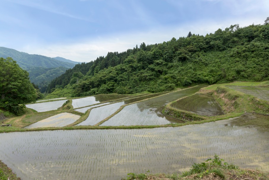 農林水産省の「日本の棚田百選」に認定され、今では数少ない日本の原風景にふれられるスポット。急勾配で不整形な土地に作られた棚田は、江戸時代から昭和30年代頃にかけて、地区の人々が鍬や馬などを使い、幾多の苦労を重ねながら整備したもの。初夏にはすくすくと伸びる苗を、秋には黄金色の稲穂が揺れる絶景を眺められます。