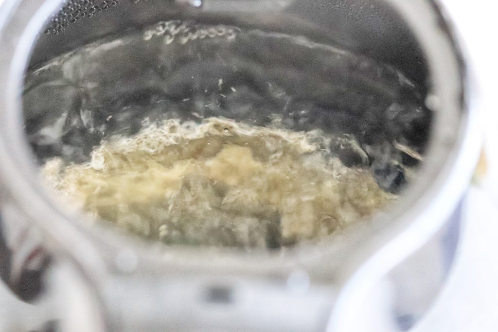 ③お湯を沸かして、沸騰直前約98度で止めます。