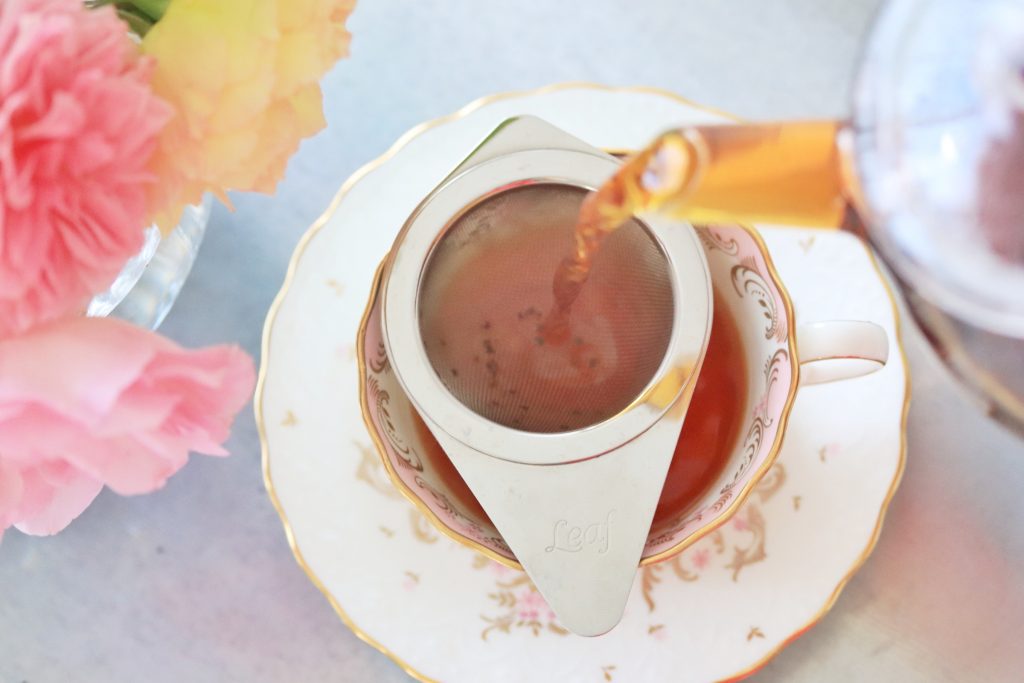 ⑥茶漉しを使ってティーカップに注ぎます。