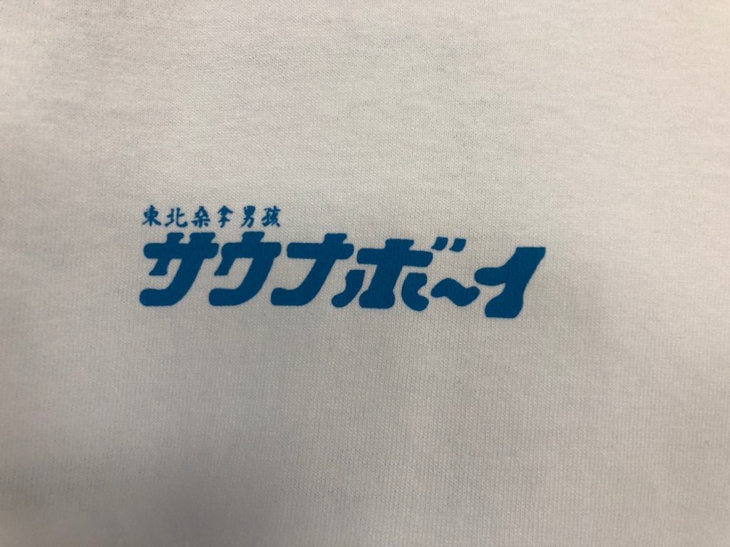 ここです!胸元に中国語で「東北」とプリントされているのです。このさりげなさがおしゃれサウナーたちの心をかき乱すのです!