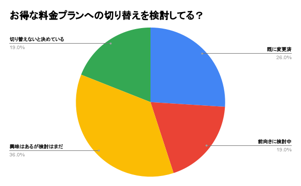 興味はあるけれど「メリット・デメリット」「手間」などを考えて、検討中という人が多いようです。すでに変更済も26%もいるので、4人に1人は大手キャリアのお得なスマホプランを使っているんですね!※『せんだいタウン情報S-style』自社の公式SNSフォロワー調べです