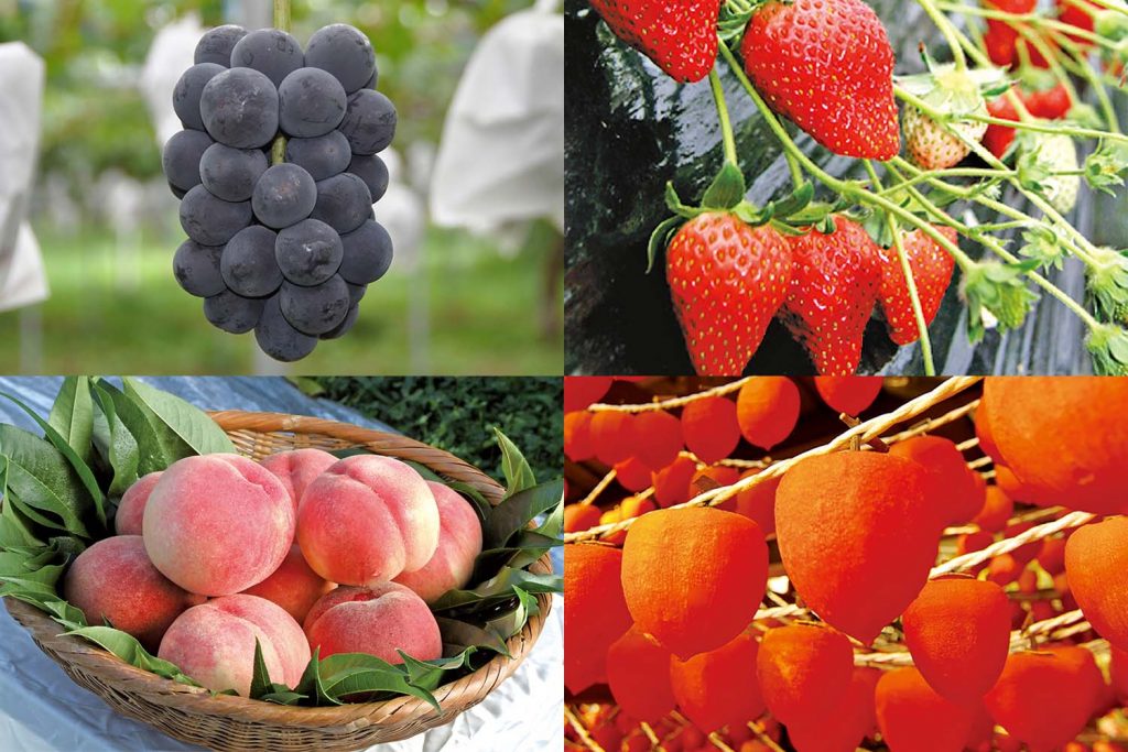 桃、ブドウ、イチゴ、柿など、旬のフルーツが自慢!