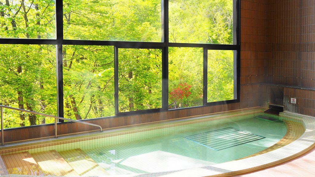 大自然が望める、広々とした気持ちいい大浴場!観光や登山の疲れを癒すのに最適