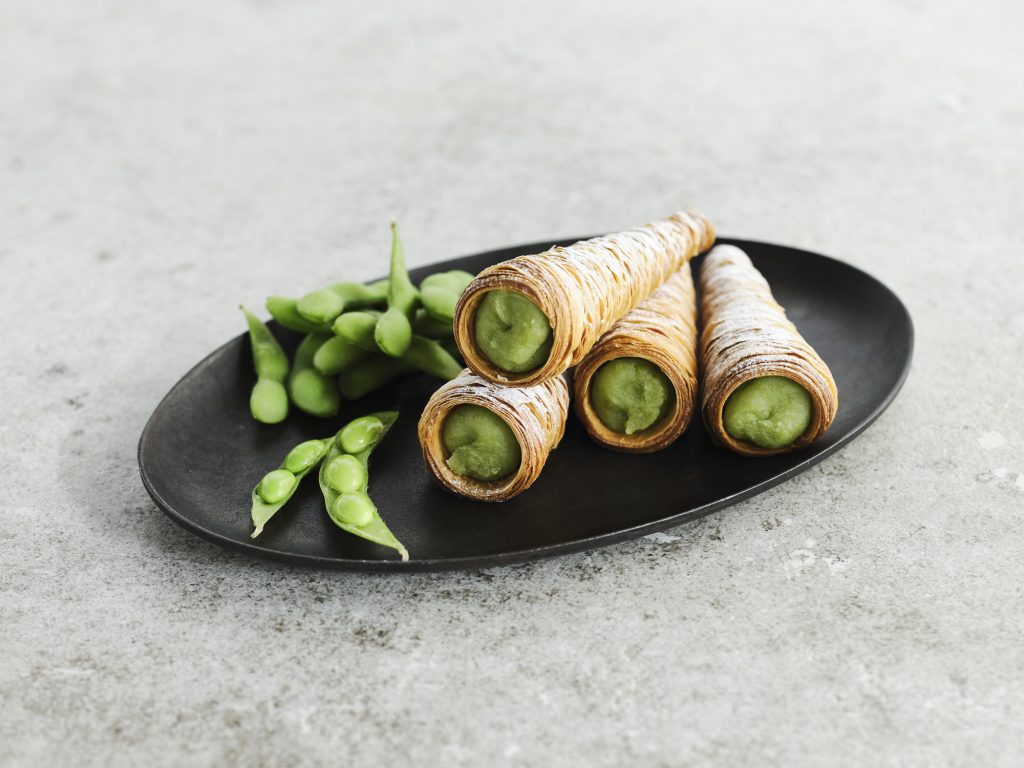 テレビやSNSでも話題をさらった「クロワッサンコロネ」には、仙台店限定フレーバーが登場。ずんだ餡とミルククリーム、ホイップクリームを混ぜた「特製ずんだ餡クリーム」をクロワッサン生地でサクサクに仕上げたコロネにたっぷりと搾っています。