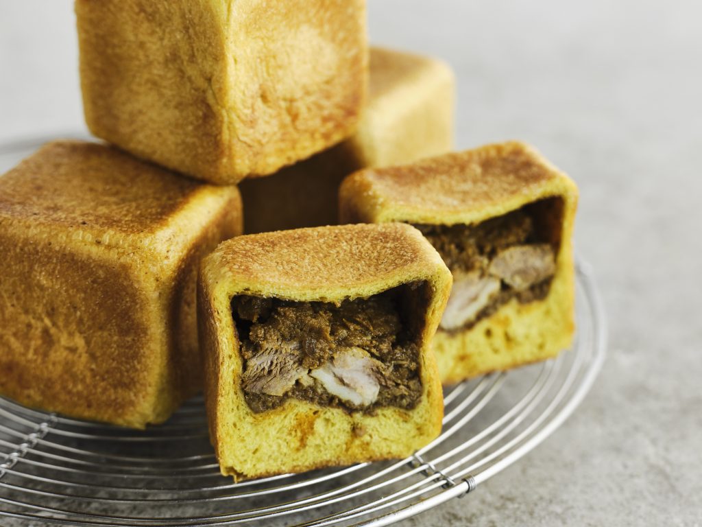 真四角のフォルムがかわいいこちらは、仙台名物の牛たんと2種のカレー、刻み大葉をカレー風味の生地で包んで焼き上げたひと品。カレーは2種類のブイヨンと10種類のホールスパイスを加えて48時間かけて仕込んだ自家製欧風カレーと、キーマカレーをブレンドしたもの。奥行きのある本格派の味わいが楽しめます。