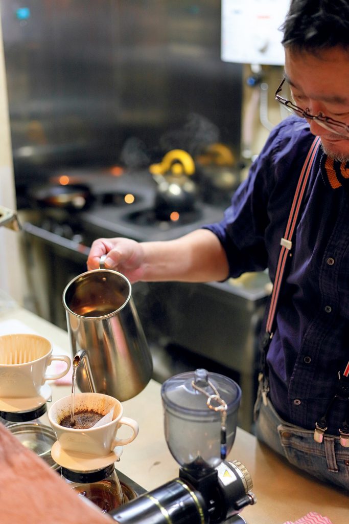“味わう”コーヒーでありたいと、コーヒーはブレンドの薄口、中濃、濃口、特濃のみ。豆はネームバリューに頼らずその時に旬のものを仕入れ、焙煎も一つの型にこだわらず、素材の持ち味を生かした焼き方を心がけているそうです。飲み飽きしないコーヒーを目指して「まだまだ研究中」と話すマスターのひたむきな姿勢が、多くの客を魅了する一杯を作り出しています。