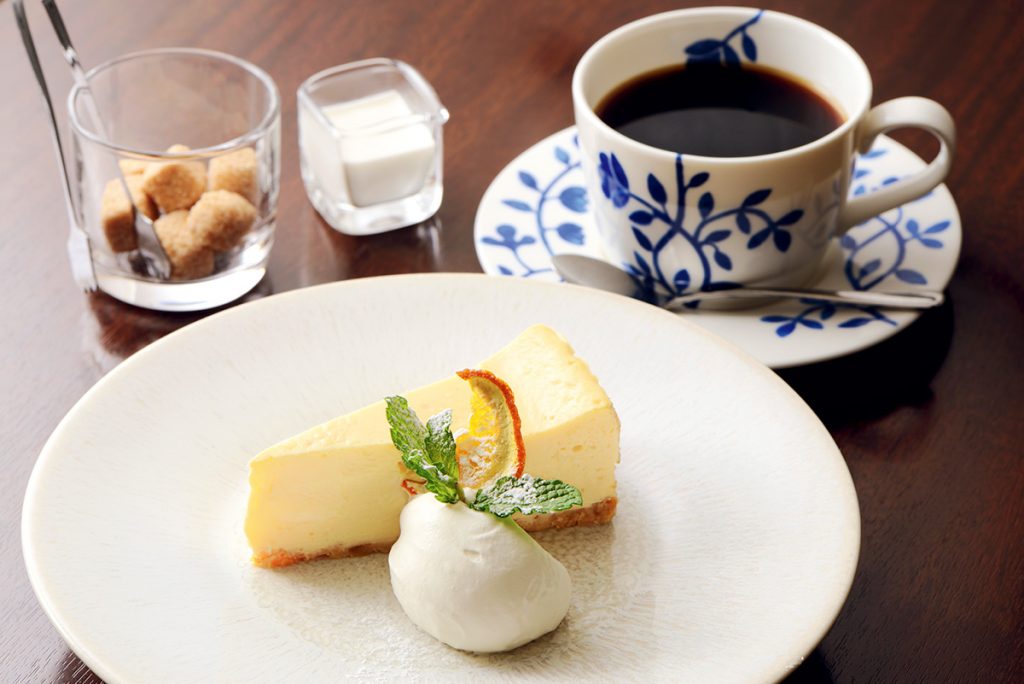 クリームチーズをたっぷり使った「N.Y.チーズケーキ」(660円)、「ブレンドコーヒー」(594円)