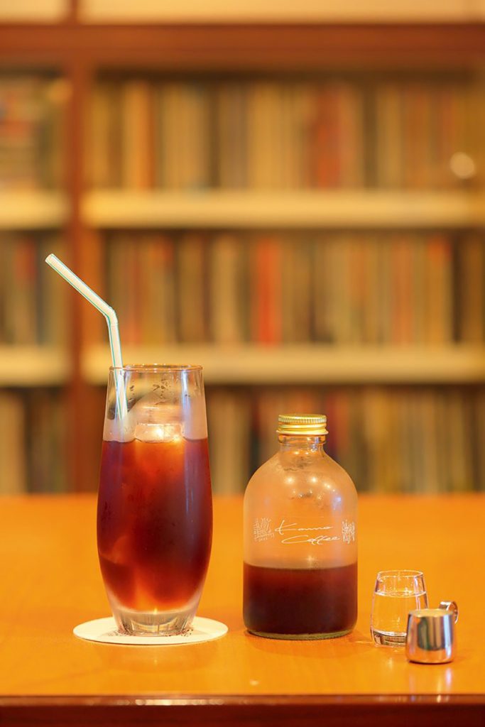 ブルースやジャズ、ロックのBGMに耳を傾け、雑誌や漫画を手にコクのあるコーヒーを楽しむひとときは、手軽で贅沢なリフレッシュタイム。家族で営む温かさもあり、店は街のオアシスとして多くの人に愛されています。瓶入りのアイスコーヒー、ボリューム満点のホットドッグなど客の満足度を考えたメニューもうれしいポイントです。