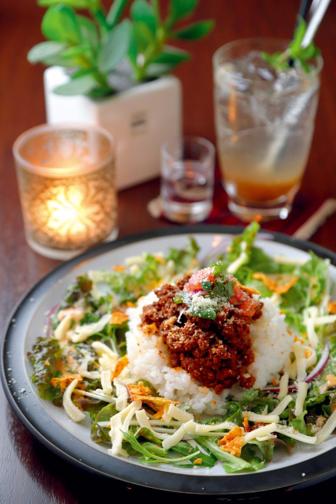 スパイスや青唐辛子が爽やかに香る「タコライス」(1,045円)と「自家製辛口ジンジャーエール」(660円)