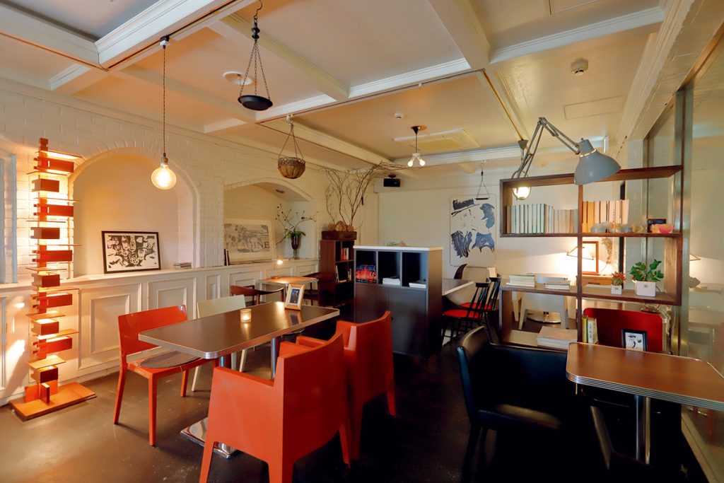 照明を落とした空間に、アーティスティックな絵画を配した店内。ボリューミーなごはんや自家製スイーツをはじめ、コーヒー以外のオリジナルドリンクやアルコール類も豊富に揃っています。陽光差し込む窓際席で昼からほろ酔いに、夜はコーヒーにスイーツを合わせて遅くまでおしゃべり…。昼夜問わずに幅広いニーズに応えてくれる一軒です。
