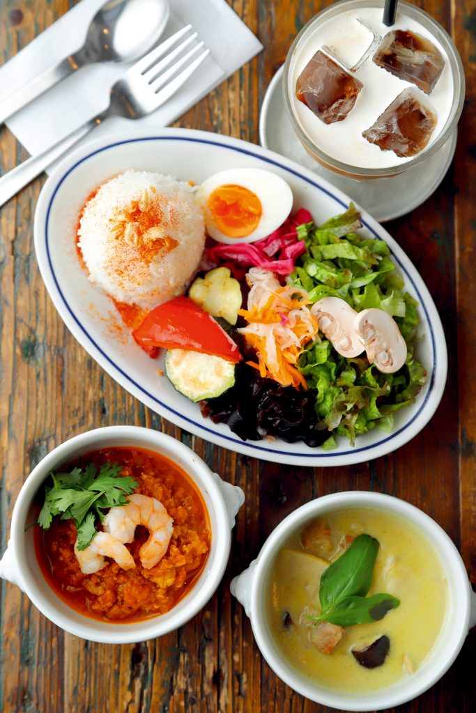キーマカレーとグリーンカレーをどちらも味わえる「エスニックカレープレート」(ドリンク付1,700円)で、鑑賞後のひとときを